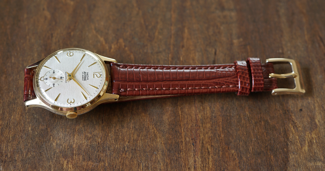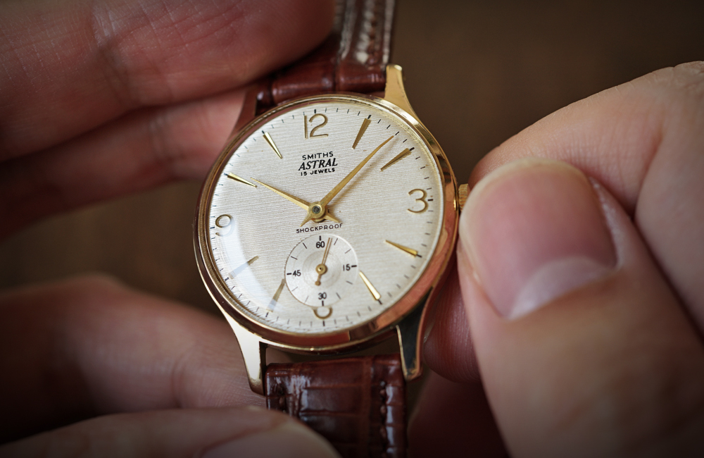 スミスの全盛期であった50〜60年代には、電池式の時計は普及していませんでした。そのため、スミスのほとんどが手巻の機械式腕時計でした。 オーナーの指の力で、竜頭を回し、幾つかのギアを経てゼンマイを巻き上げて、蓄積された力が動力となり一秒を生み出し24時間以上動作するという、その仕組みには、正確な時間はスマホがあれば知ることができる今だからこそ、愛おしさを感じることができるのでしょう。 詳しくはこちらから。