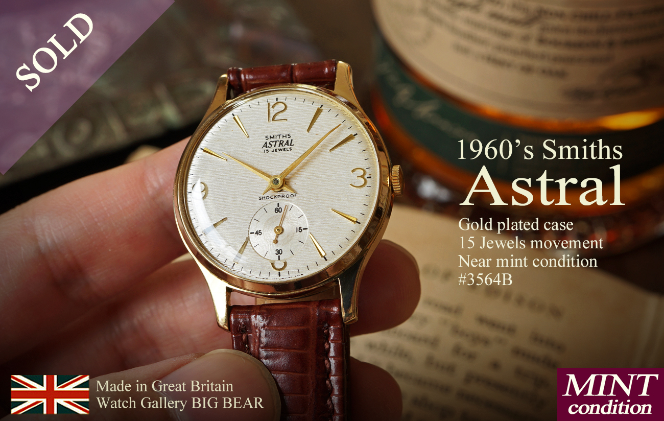 デラックスと並ぶスミスの人気ラインナップのひとつです。ムーブメントはスモールセコンドの15石、センターセコンドの17石と高性能キャリバーが搭載されています。デザインはデラックスに比べ、モダンでシンプルな傾向で、当時のスミスとしては斬新で前衛的なモデルと言えます。現代の目で見るとそのデザインはスミスらしさに溢れた、いわばスミスが作り上げた古典的スタンダードと言えるでしょう。そのため、近年発売されているクラシカルなデザインの腕時計には、アストラルのデザイン・エッセンスが取り入れられている製品が多く見受けられます。