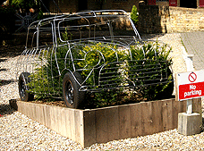 Bourton-on-the-waterを 訪れたときには 必ず立ち寄って欲しいのが Cotswold Motoring Museumだ 日本のそれとは違う楽しい演出が魅力 これはなんだか分かるだろうか? 未完成だが英国お得意のトピアリーだ 今までは一台も展示されていなかった ミニのトピアリーを作るとは 英国人のミニ50周年への 深い気持ちが伝わってくる |