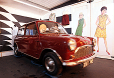 初代ミニが回転しながら 展示されているユニークなスペース ミニ生誕50周年を向かえ クラシックカーとしての市民権を得た そんな印象を確実なものとしている… |