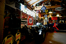 バイクの修理屋を再現したコーナー ここが博物館であることを忘れてしまいそうに 引き込まれてしまう世界観が溢れている |