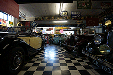 ミュージアムの中へ入ると ところ狭しとクラシック・カーが並ぶ クルマの展示だけにとどまらない オートモビリアの数々も魅力のひとつだ |