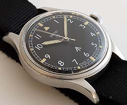スミス社製の腕時計の中でも特にクウォリティーと耐久性が高いとされている17石ムーブメント搭載のミリタリー腕時計です。竜頭を引くと秒針が止まるハック機能つきです。ケースに微細な傷が見られる以外は新品同様といえるほど美しい固体です。ムーブメントの美しさから、ほとんど使用されていなかったことがわかります。新品ストラップ付。通常価格\349,000