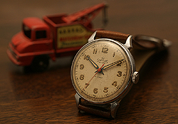 最初期のセンター・セコンド・デラックス・モデルです。程よく使い込まれ、アンティークらしい雰囲気を持つアイテムです。メカニズムはオーバーホールされ完璧な状態です。