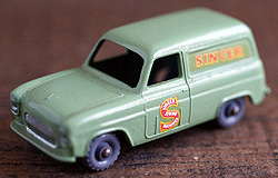 レズリー・マッチボックスの59番、フォード・テームズ・シンガー・バン。写真でお分かりいただける通りのニアミントボックスコンディションの個体です。だいじに仕舞っておくのもも良し、ショーケースに入れるのも良し。いやいや、遊んで思いっきりエイジングを楽しんじゃいましょうか?形、色、デザイン、風合いのすべてが可愛いですね!