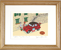 イラストレーターYasuo OkumaのシルクスクリーンMy dear CarシリーズのNo.11です。お花屋さんのシトロエン2CV。■インチサイズ木製フレーム付。■フレームサイズ: 285×237mm■限定数:200枚(サイン、エディションナンバー入り)