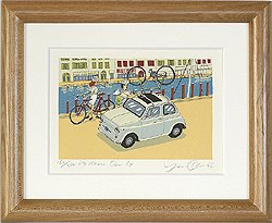 イラストレーターYasuo OkumaのシルクスクリーンMy dear CarシリーズのNo.14です。チンクチェントのルーフに自転車を積んで海辺へサイクリング。■インチサイズ木製フレーム付。■フレームサイズ: 285×237mm■限定数:200枚(サイン、エディションナンバー入り)