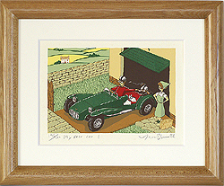 | イラストレーターYasuo OkumaのシルクスクリーンMy dear CarシリーズのNo.2です。彼はすっかりワインディングを飛ばしに行く気持ち。彼女はピクニックに「行きたかったのに・・・。■インチサイズ木製フレーム付。■フレームサイズ: 285×237mm■限定数:200枚(サイン、エディションナンバー入り)