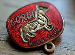 コーギー社が1950年代に発行したモデルクラブバッジのファーストエディションです。コーギーモデルクラブ会員の証として発行されたお馴染みのバッジですが、下部にリングが付くのは最も古いタイプです。堀の深いコーギー犬の周りにエナメルを施したとても趣のあるデザインです。コンディションはキズなどがほとんどない素晴らしいコンディションです。オリジナルボックスは残念ながら付属いたしません。