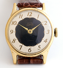 | 1940〜50年代英国スミス社製エンパイア2トーンダイヤル手巻腕時計90日間保証付 メッキのケースにはわずかなキズがあり、文字盤にも多少の経年変化が見られますが、この年代としては極めてコンディションの良いアイテムです。使い込まれたエンパイア・モデルはメカニズムが不安定で信頼性はデラックス・モデルとは比較にならないですが、こちらのエンパイヤは使用頻度か少なく、完璧な整備が施されているため、保証付での販売となっております。エンパイアならではの遊び心のあるデザインは根強い人気があります。 ご購入前にご覧下さい(My dear Miniのポリシーです!) |