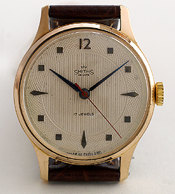 | 2077B C1954 英国スミス社製デラックス金メッキケース17石手巻腕時計365日間保証付 文字盤がとても個性的なレアモデルです。金メッキのケースには深いキズはなく日常の使用で付いた細かいスクラッチのみの状態を保った美しいアイテムです。メッキの剥がれも見られずSS製の裏蓋も浅い傷のみの良い状態といえます。文字盤に関してもわずかなエイジングが見られるのみでブルースチールハンズの長短針とレッドに塗装された秒針も素晴らしいコンディションです。竜頭及びクリスタルは新品に交換されています。ムーブメントは、極めて美しく使用頻度の少なかった個体であると思われます。新品本革ストラップ付。外径約32mm |