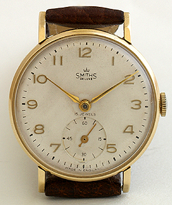 | 1954年英国スミス社製デラックス9金無垢オースティン・モーター・カンパニー・プレゼンテーションウォッチ365日間保証付金無垢ケースのスモールセコンド仕様デラックスです。最大の特徴は裏蓋に刻まれているようにオースティン社が退職時に社員へプレゼントしたアイテムであることです。文字盤のわずかなエイジングと使い込まれて、やや、丸味を帯びたラグ以外は素晴らしいコンディションといえます。My dear Miniで取扱のスミス腕時計は、すべてオリジナルコンディションに基づいたリペアを行っており、365日間の保証付ですので安心してご使用いただけます。外径約31mm |