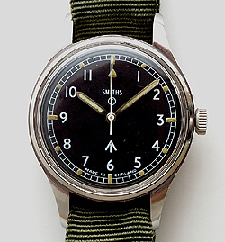 | 1970年英国スミス社製ミリタリーSSケース17石手巻腕時計365日間保証付 ファンの多いスミスのミリタリーウォッチです。実際に英国軍用として発行された貴重なモデルです。極めて頑強なステンレス製のケースはダストカバーとパッキン付のスクリューバックを備えており、大き目の竜頭も純正のウォータープルーフ対応タイプが装着されています。ブラックフェイスの文字盤には夜光塗料が施され、時針、分針にも同様の加工がされています。また、竜頭を引くと秒針がロックされるハック機能も装備されヘビーデューティーかつハイクウォリティーなミリタリーモデルであるといえます。ベルトはNATOタイプの新品です。 通常価格¥262,500 |