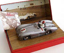 1954年にシルバーストーンにてファンジオがドライブしたメルセデスW196をリアルに再現したモデルです。ボディー全体にヨゴレ塗装が施されておりとても雰囲気のあるモデルです。1000個限定生産品!ブリキ製ゼンマイ駆動。ジャッキの他、スパナなどの工具付。フィギュアはずっしりとしたメタル製です。全長約210mm