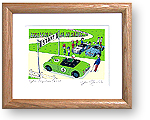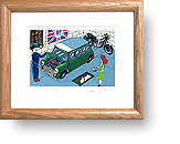 イラストレーターYasuo Okumaのシルクスクリーン(版画)です。ミニ以外の英国車をモチーフにユーモラスなシーンが描かれています。