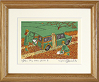 シルクスクリーン My dear Mini No.10 イラストレーターYasuo OkumaのシルクスクリーンMy dear MiniシリーズのNo.10です。収穫の季節になると、ピックアップが大活躍・・・。