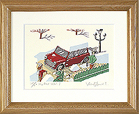 シルクスクリーン My dear Mini No.5 イラストレーターYasuo OkumaのシルクスクリーンMy dear MiniシリーズのNo.5です。冬の朝、家族で雪に埋もれたミニを救出!