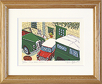 シルクスクリーン My dear Mini No.7 イラストレーターYasuo OkumaのシルクスクリーンMy dear MiniシリーズのNo.7です。イギリスでも観光地では駐車場難。でも、ミニなら・・・