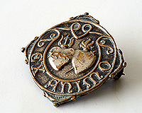 真鍮に彩色が施されたヴィンテージな雰囲気溢れる厚みがあい重量感のあるバッジです。年代は不明ですが作りから近年のアイテムではないかと思われます。サイズ:幅約25mm