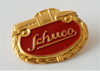 真鍮にエナメル塗装と思われる。シュコー社純正のコレクターズ・バッジです。サイズ:幅約25mm