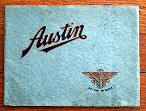 1929年に発行されたオースティン総合カタログです。セヴン・クーペの掲載は貴重です。表紙4ページを含め全40ページの豪華版です。サイズ約190mm×255mm。
